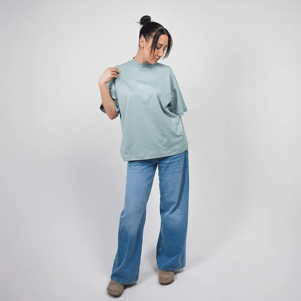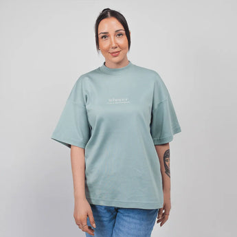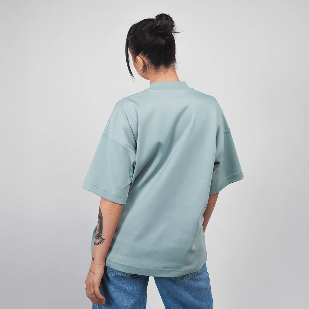 Unser Perspective Jadeite Tee in Jadegrün ist ein oversized Unisex-Shirt mit ruhiger Ausstrahlung und klarer Haltung. Auf der Vorderseite steht die Frage „can you see through another’s eyes?“ ein Detail, dass ihm Tiefe gibt. Gefertigt aus schwerer Bio-Baumwolle mit 238 g/m² fühlt sich das Shirt hochwertig an und fällt dabei angenehm locker. Der Schnitt ist entspannt, clean und für den Alltag gemacht.